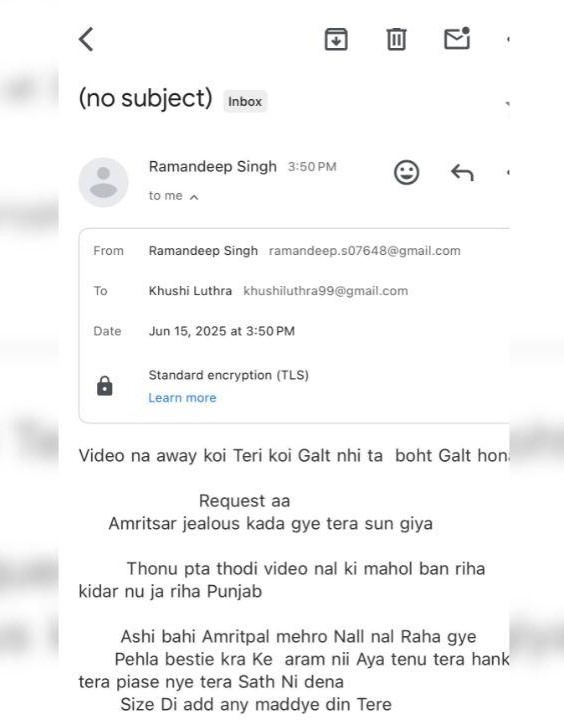 ਅੰਮ੍ਰਿਤਸਰ, 17 ਜੂਨ : ਕਮਲ ਕੌਰ ਭਾਬੀ ਕਤਲ ਕਾਂਡ ਤੋਂ ਬਾਅਦ ਸੋਸ਼ਲ ਮੀਡੀਆ ਇਨਫਲੂਐਂਸਰਾਂ ਵੱਲੋਂ ਮਿਲ ਰਹੀਆਂ ਧਮਕੀਆਂ ਨੇ ਦਹਿਸ਼ਤ ਦਾ ਮਾਹੌਲ ਪੈਦਾ ਕਰ ਦਿੱਤਾ ਹੈ। ਇਸ ਕੜੀ ਵਿੱਚ, ਪੁਲਿਸ ਨੇ ਮਸ਼ਹੂਰ ਇੰਸਟਾਗ੍ਰਾਮ ਇਨਫਲੂਐਂਸਰ ਦੀਪਿਕਾ ਲੂਥਰਾ ਨੂੰ ਈਮੇਲ ਰਾਹੀਂ ਧਮਕੀ ਦੇਣ ਵਾਲੇ ਦੋਸ਼ੀ ਨੂੰ ਗ੍ਰਿਫ਼ਤਾਰ ਕਰ ਲਿਆ ਹੈ। ਦੀਪਿਕਾ ਲੂਥਰਾ ਨੇ ਆਪਣੀ ਸੁਰੱਖਿਆ ਬਾਰੇ ਚਿੰਤਾ ਪ੍ਰਗਟ ਕਰਦੇ ਹੋਏ ਆਪਣਾ ਇੰਸਟਾਗ੍ਰਾਮ ਅਕਾਊਂਟ ਡੀਐਕਟੀਵੇਟ ਕਰ ਦਿੱਤਾ ਹੈ।