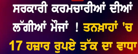 ਕੇਂਦਰ ਸਰਕਾਰ ਨੇ ਸਰਕਾਰੀ ਖੇਤਰ ਦੀਆਂ ਕੰਪਨੀਆਂ (PSUs) ਵਿੱਚ ਕੰਮ ਕਰ ਰਹੇ ਕਰਮਚਾਰੀਆਂ ਨੂੰ ਖ਼ੁਸ਼ਖ਼ਬਰੀ ਦਿੰਦੇ ਹੋਏ ਵੱਡਾ ਐਲਾਨ ਕੀਤਾ ਹੈ। ਸਰਕਾਰ ਨੇ ਇਨ੍ਹਾਂ ਕਰਮਚਾਰੀਆਂ ਦੀ ਤਨਖਾਹ ਵਿੱਚ 17,000 ਰੁਪਏ ਤੱਕ ਵਾਧਾ ਕਰਨ ਦਾ ਫੈਸਲਾ ਲਿਆ ਹੈ। ਇਹ ਵਾਧਾ ਵੱਖ-ਵੱਖ ਪੱਧਰਾਂ ‘ਤੇ ਕੰਮ ਕਰ ਰਹੇ ਕਰਮਚਾਰੀਆਂ ਲਈ ਹੋਵੇਗਾ ਅਤੇ ਇਹ 7ਵੀਂ ਪੇ ਕਮਿਸ਼ਨ ਦੇ ਮਾਪਦੰਡਾਂ ਦੇ ਅਧਾਰ ‘ਤੇ ਲਾਗੂ ਕੀਤਾ ਜਾਵੇਗਾ।