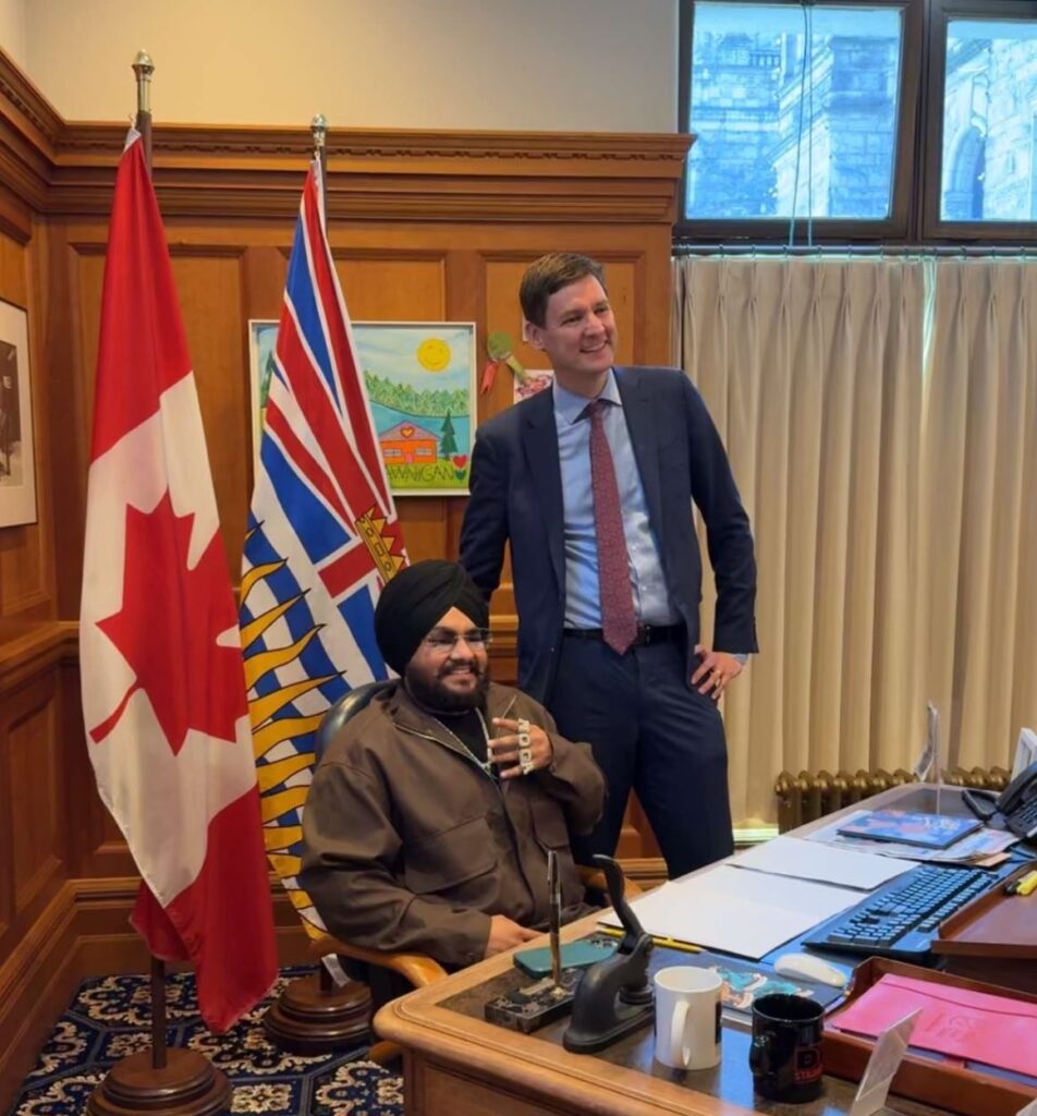 ਨੈਸ਼ਨਲ ਟਾਈਮਜ਼ ਬਿਊਰੋ :- ਬਰਿਟਿਸ਼ ਕੋਲੰਬੀਆ ਦੀ ਰਾਜਧਾਨੀ ਵਿਕਟੋਰੀਆ ਵਿਚ ਪੰਜਾਬੀ ਗਾਇਕ ਜੈਜ਼ੀ ਬੀ, ਚੰਨੀ ਨੱਟਣ ਅਤੇ ਇੰਦਰਪਾਲ ਮੋਗਾ ਨੇ ਪ੍ਰਾਂਤ ਦੀ ਵਿਧਾਨ ਸਭਾ ਦਾ ਦੌਰਾ ਕੀਤਾ। ਇਸ ਦੌਰਾਨ ਉਨ੍ਹਾਂ ਨੂੰ ਵਿਧਾਨ ਸਭਾ ਦੇ ਪਾਰਲੀਮੈਂਟਰੀ ਡਾਈਨਿੰਗ ਰੂਮ ਵਿਚ ਲੰਚ ਲਈ ਸੱਦਾ ਦਿੱਤਾ ਗਿਆ। ਜਿੱਥੇ ਇੱਕ ਪਾਸੇ ਉਨ੍ਹਾਂ ਦਾ ਸਨਮਾਨ ਕੀਤਾ ਗਿਆ, ਓਥੇ ਦੂਜੇ ਪਾਸੇ ਕੁਝ ਵਿਧਾਇਕਾਂ ਵੱਲੋਂ ਇਸ ਉੱਤੇ ਵਿਰੋਧ ਵੀ ਦਰਜ ਕਰਵਾਇਆ ਗਿਆ।