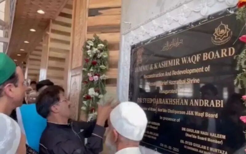 ਸ੍ਰੀਨਗਰ : ਜੰਮੂ-ਕਸ਼ਮੀਰ ਦੀ ਰਾਜਧਾਨੀ ਸ੍ਰੀਨਗਰ ਵਿੱਚ ਸਥਿਤ ਹਜ਼ਰਤਬਲ ਦਰਗਾਹ ਵਿੱਚ ਈਦ-ਏ-ਮਿਲਾਦ ਦੇ ਮੌਕੇ ‘ਤੇ ਸ਼ੁੱਕਰਵਾਰ ਨੂੰ ਇੱਕ ਵੱਡਾ ਵਿਵਾਦ ਖੜ੍ਹਾ ਹੋ ਗਿਆ। ਸਥਾਨਕ ਲੋਕਾਂ ਨੇ ਦਰਗਾਹ ਕੰਪਲੈਕਸ ਵਿੱਚ ਲਗਾਈ ਗਈ ਤਖ਼ਤੀ ‘ਤੇ ਅਸ਼ੋਕ ਸਤੰਭ ਦੇ ਪ੍ਰਤੀਕ ‘ਤੇ ਇਤਰਾਜ਼ ਜਤਾਇਆ ਅਤੇ ਵਿਰੋਧ ਪ੍ਰਦਰਸ਼ਨ ਹਿੰਸਕ ਰੂਪ ਲੈ ਲਿਆ। ਭੀੜ ਨੇ ਨਾਅਰੇਬਾਜ਼ੀ ਕਰਦੇ ਹੋਏ ਪੱਥਰਾਂ ਨਾਲ ਤਖ਼ਤੀ ‘ਤੇ ਹਮਲਾ ਕਰ ਦਿੱਤਾ ਅਤੇ ਇਸਨੂੰ ਤੋੜ ਦਿੱਤਾ। ਇਸ ਘਟਨਾ ਦੀ ਵੀਡੀਓ ਸੋਸ਼ਲ ਮੀਡੀਆ ‘ਤੇ ਤੇਜ਼ੀ ਨਾਲ ਵਾਇਰਲ ਹੋ ਰਹੀ ਹੈ।