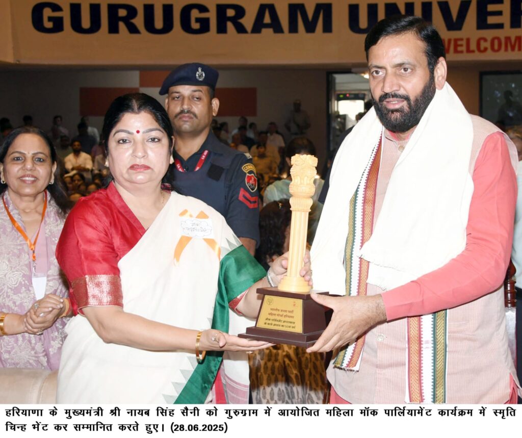 गुरुग्राम में महिला मॉक संसद: मुख्यमंत्री नायब सिंह सैनी ने आपातकाल में महिलाओं के योगदान को सराहा
